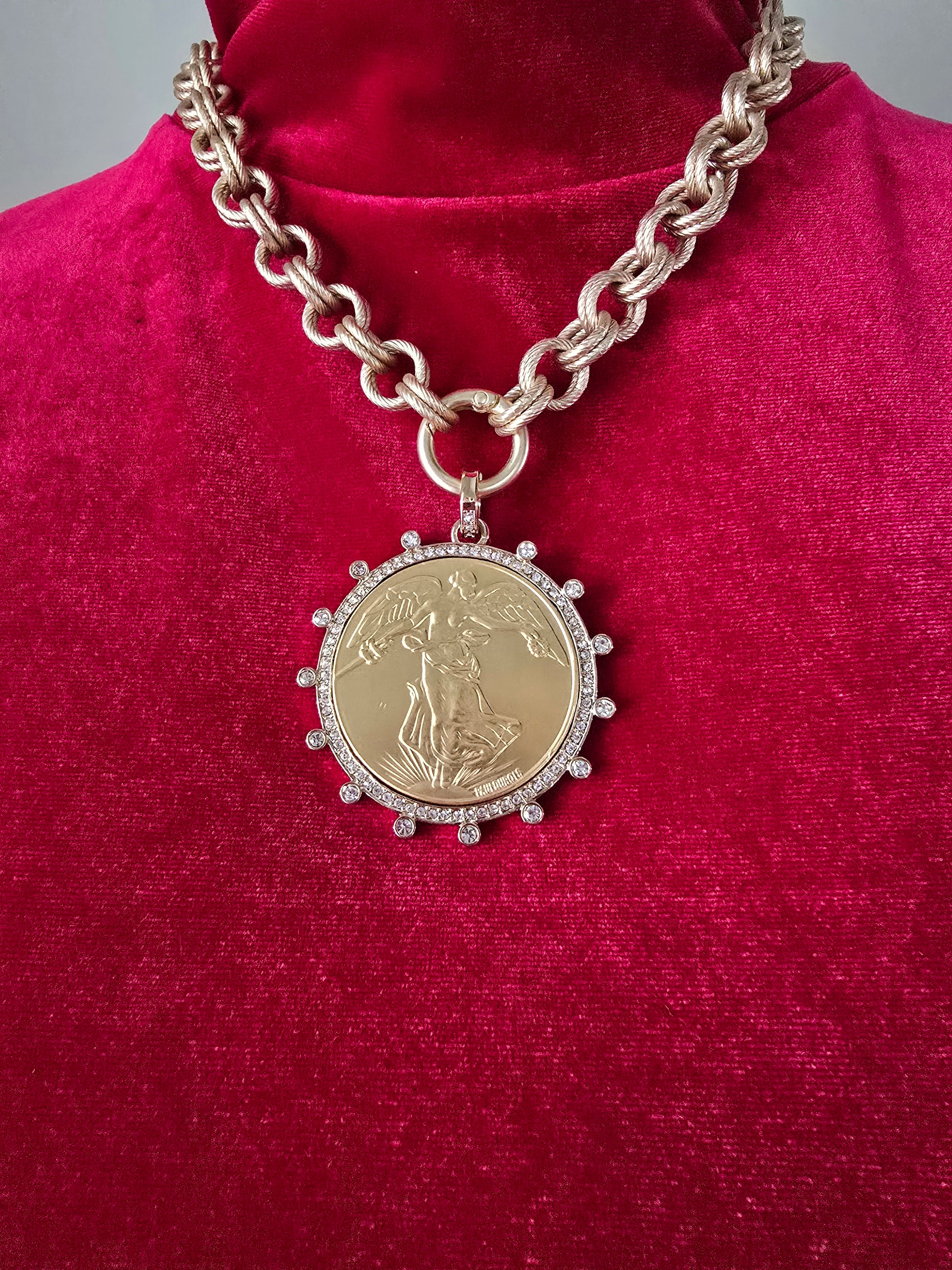 This necklace pairs beautifully with linen tops, coastal-inspired outfits, and elegant evening looks. The medallion gives a touch of old-world romance while the chunky chain keeps it modern and fashion-forward.